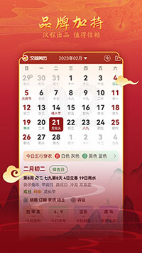 汉程黄历由汉程品牌出品,是专业精准的传统黄历,经过人工与权威古籍校对。集黄历、万年历、公历、农历、干支历于一体,涵盖每日宜忌、择吉日、星座、十二生肖、二十四节气、传统节日、每日运势等近百项优势内容。